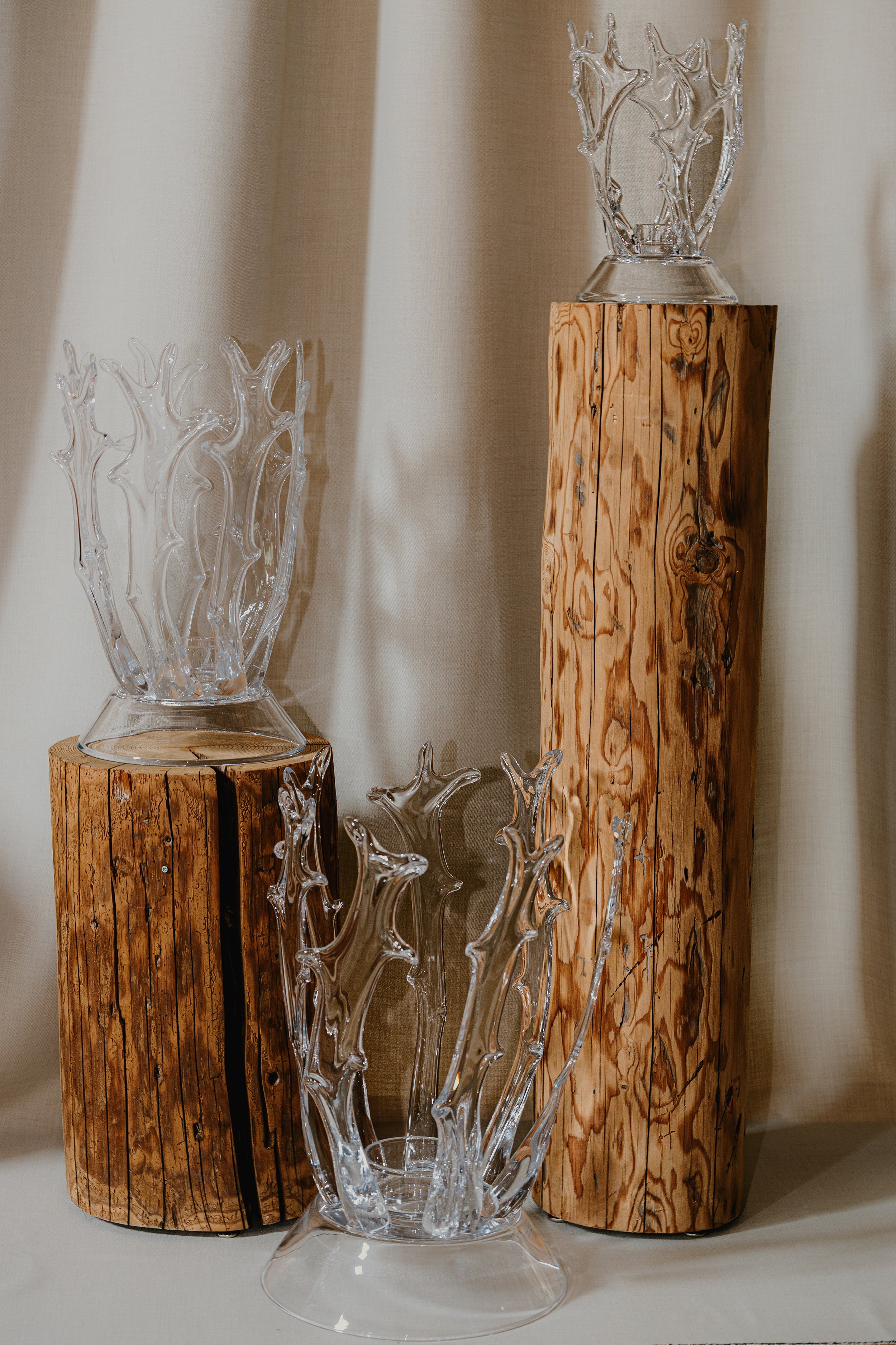 Chaque pièce est unique, marquée par de subtiles variations de forme, de transparence et de bulles, signatures du travail du verre soufflé.