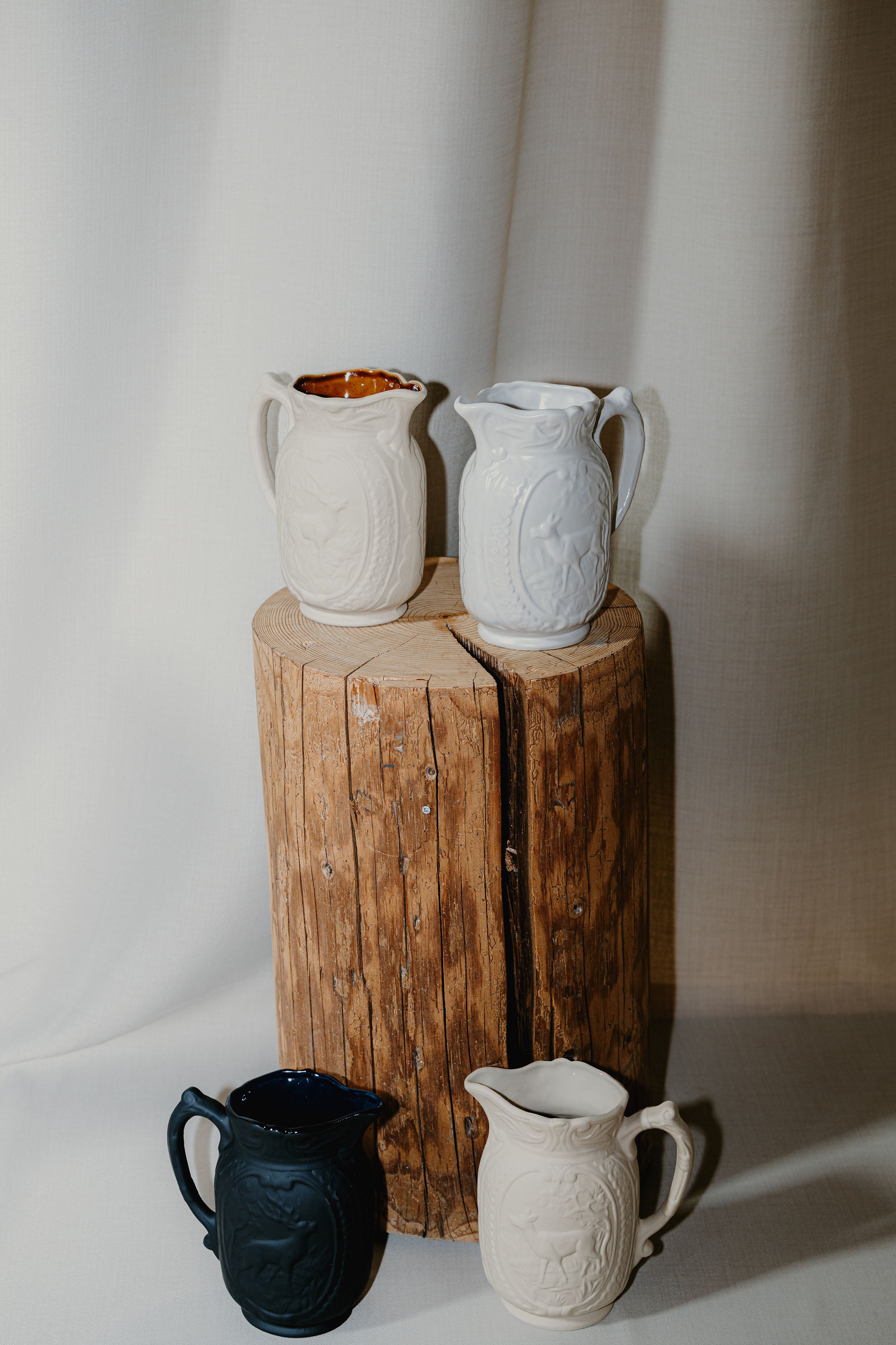 Pichet cerf – Barbotine blanche mate