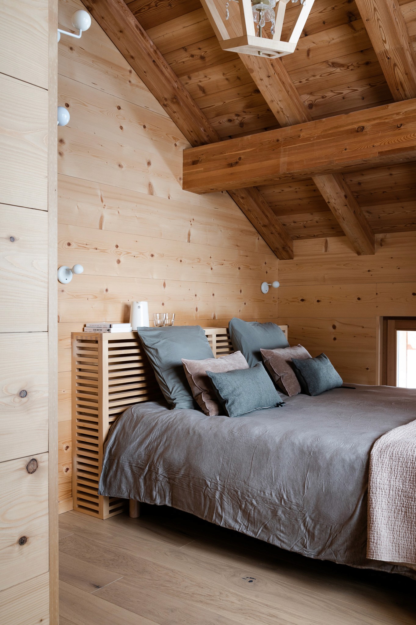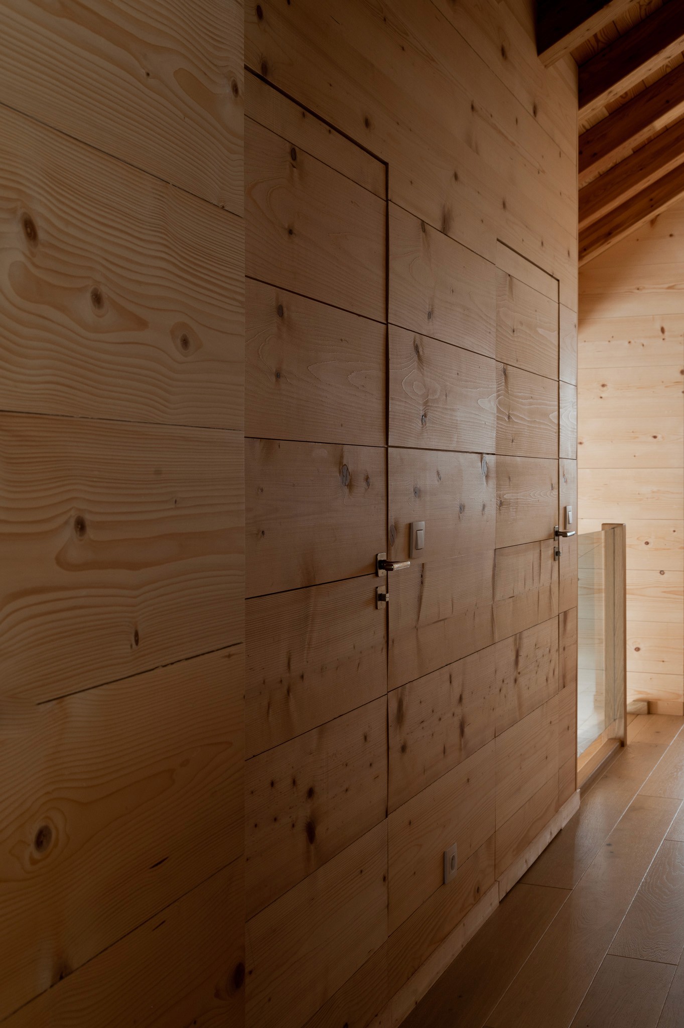 Entièrement conçu et aménagé par Les Montagnardes, le Chalet Carlos incarne pleinement l’identité esthétique du bureau d’étude. Ce projet contemporain met en avant le bois, utilisé aussi bien comme élément sculptural que comme matière d’effacement : les portes et éléments techniques se fondent dans les parois, laissant place à des lignes pures et continues.