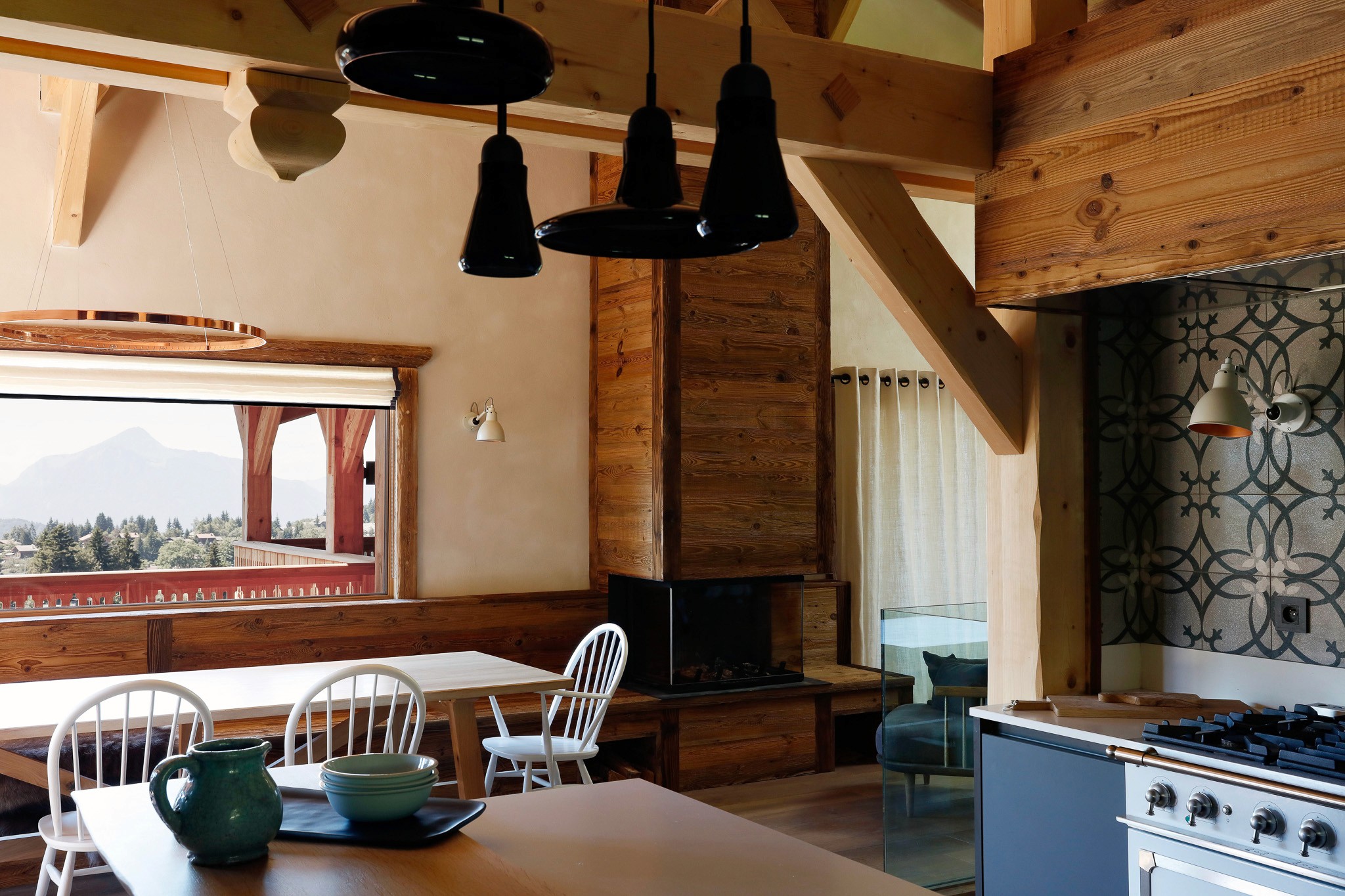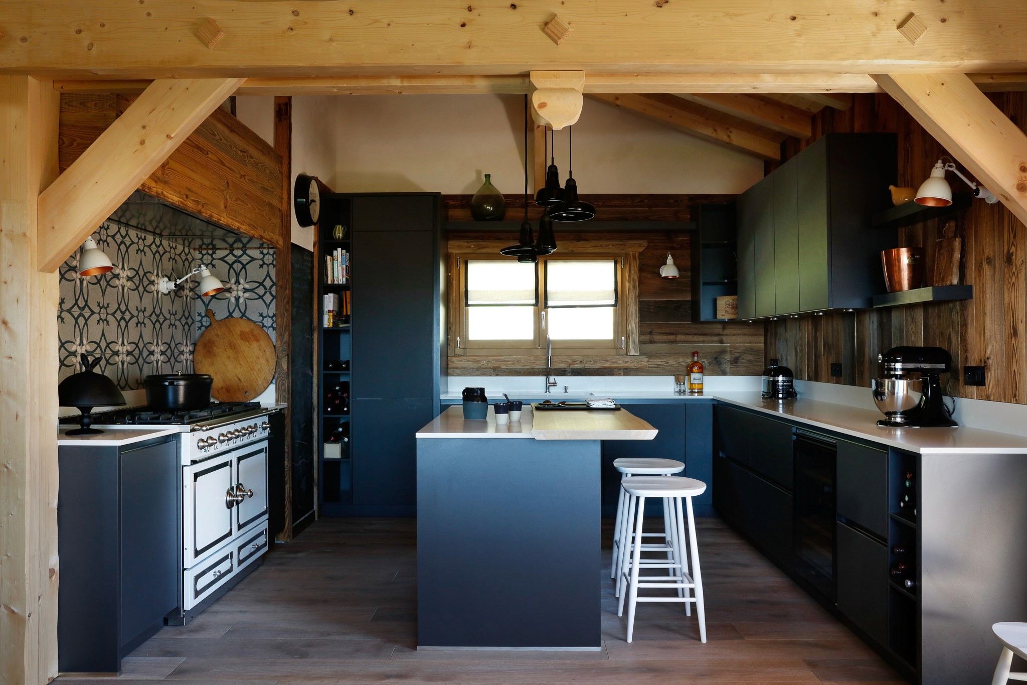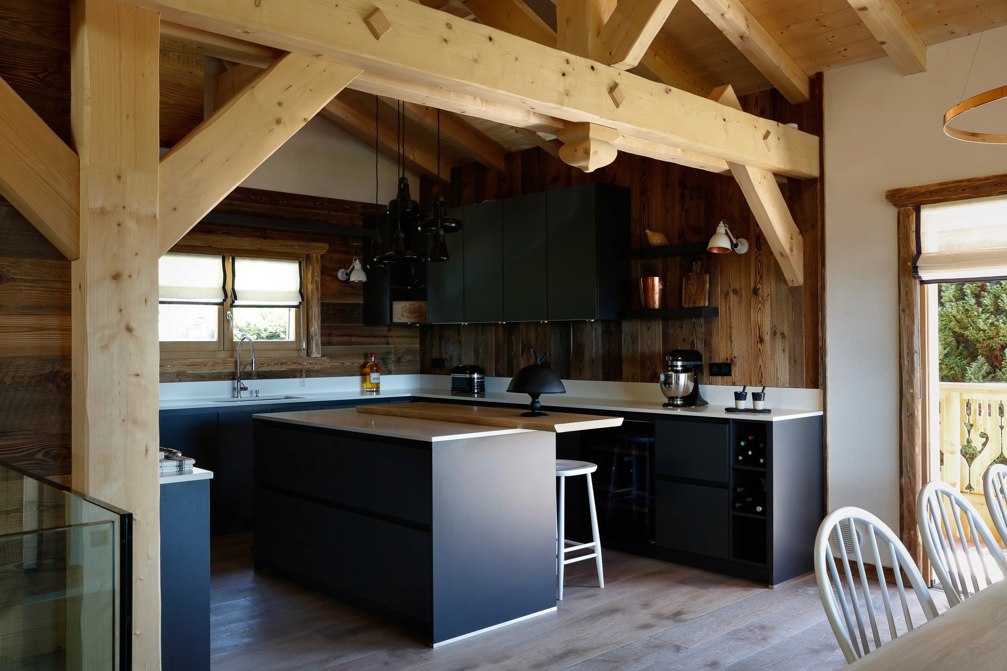 Située dans un chalet à l’architecture plutôt classique, cette cuisine a été pensée comme un subtil jeu d’équilibre entre tradition et modernité.