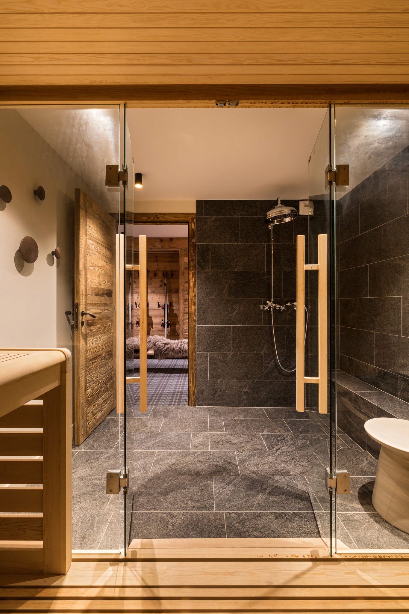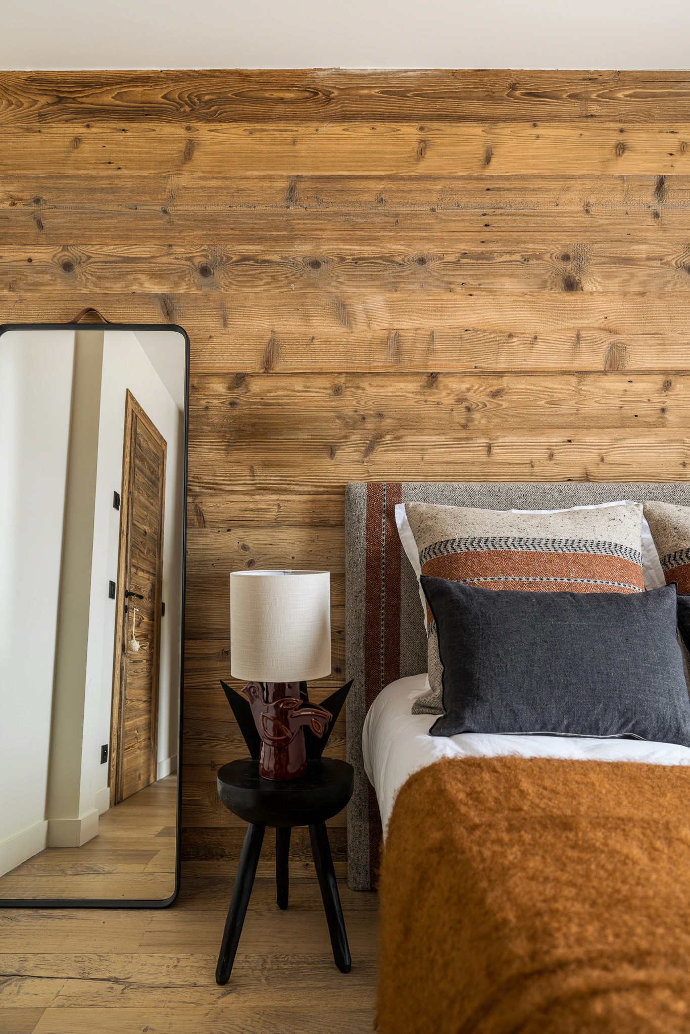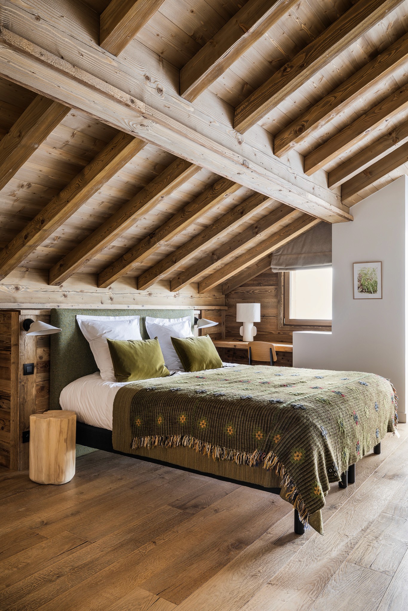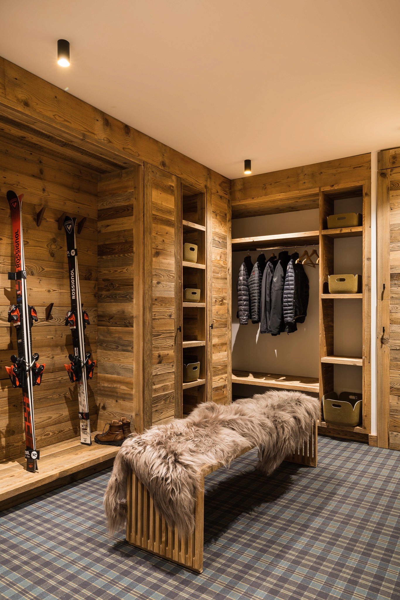 Nous avons conçu l’ensemble des aménagements sur mesure, des menuiseries intégrées jusqu’à la cuisine, véritable pièce maîtresse du lieu. Les teintes chaudes et les matières naturelles — bois, pierre et textiles doux — créent une atmosphère enveloppante, fidèle à l’esprit montagne et au confort d’un intérieur chaleureux.