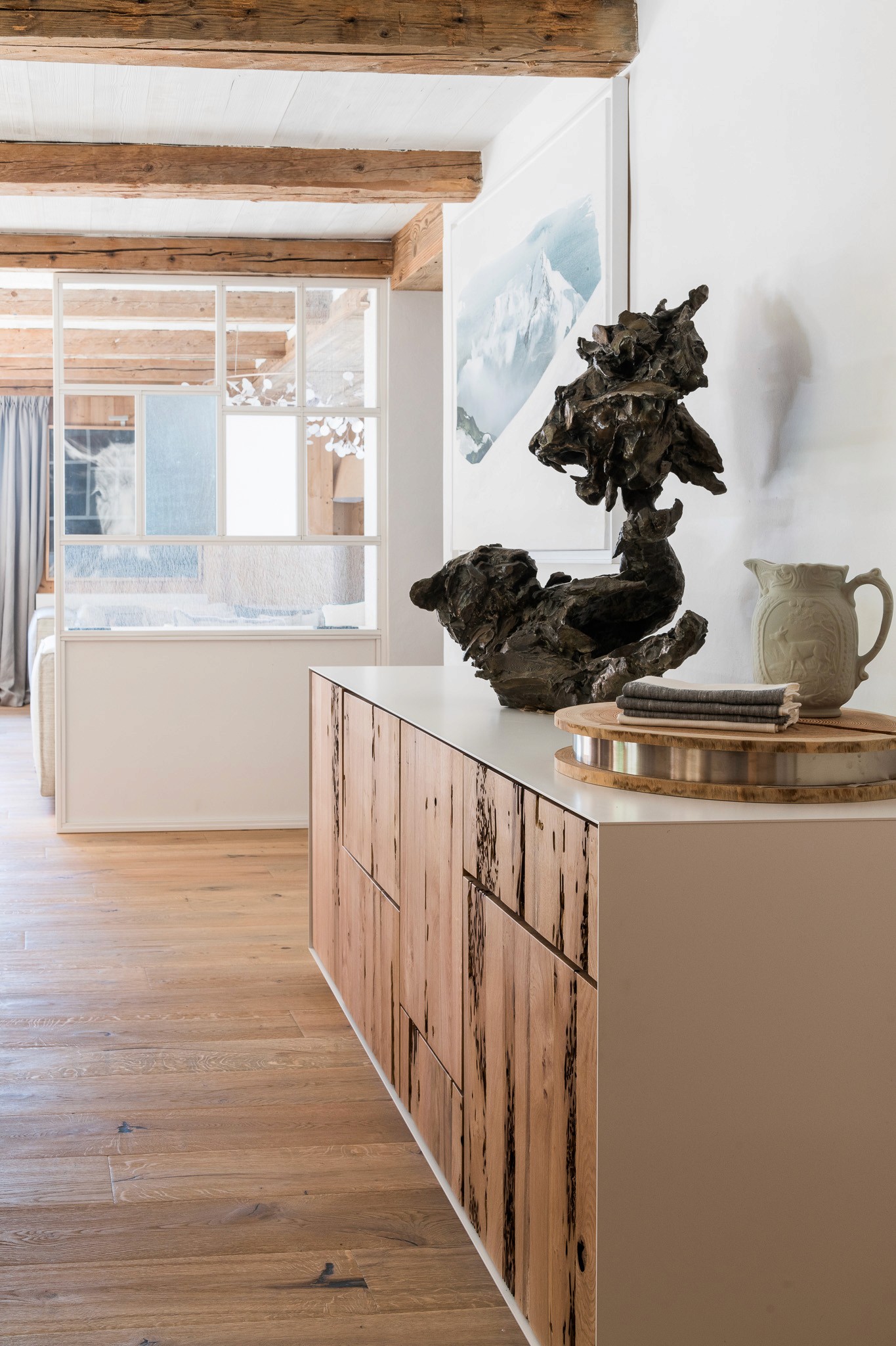 Nichée au coeur de Megève, cette ancienne ferme pleine de charme a été entièrement repensée sans jamais trahir son âme.