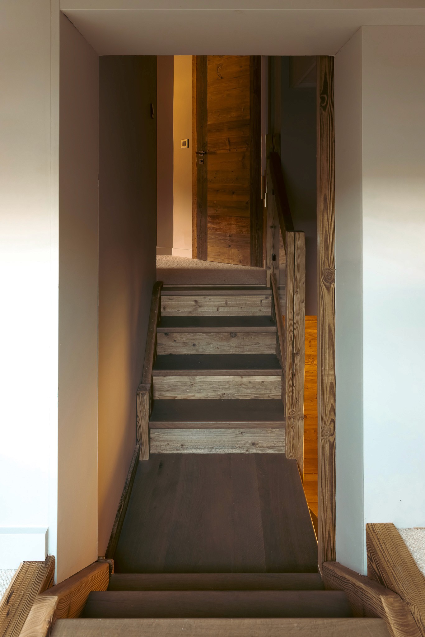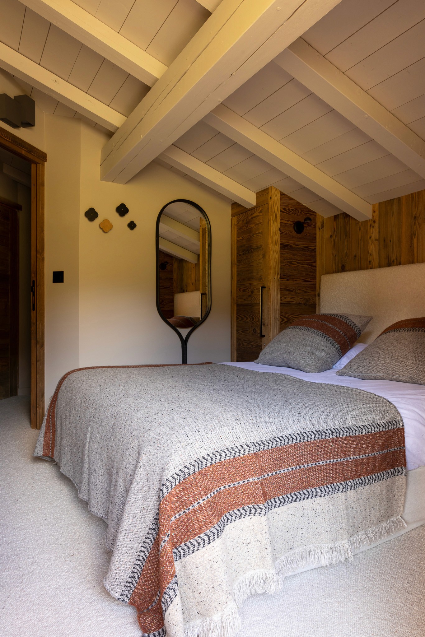 Cette rénovation totale d’un chalet des années 70 à Megève a permis de repenser entièrement les volumes pour mieux répondre à un mode de vie contemporain. L’ancien garage a été transformé en une cuisine au rez-de-chaussée, surmontée d’un dortoir à l’étage, optimisant ainsi l’usage de chaque niveau.